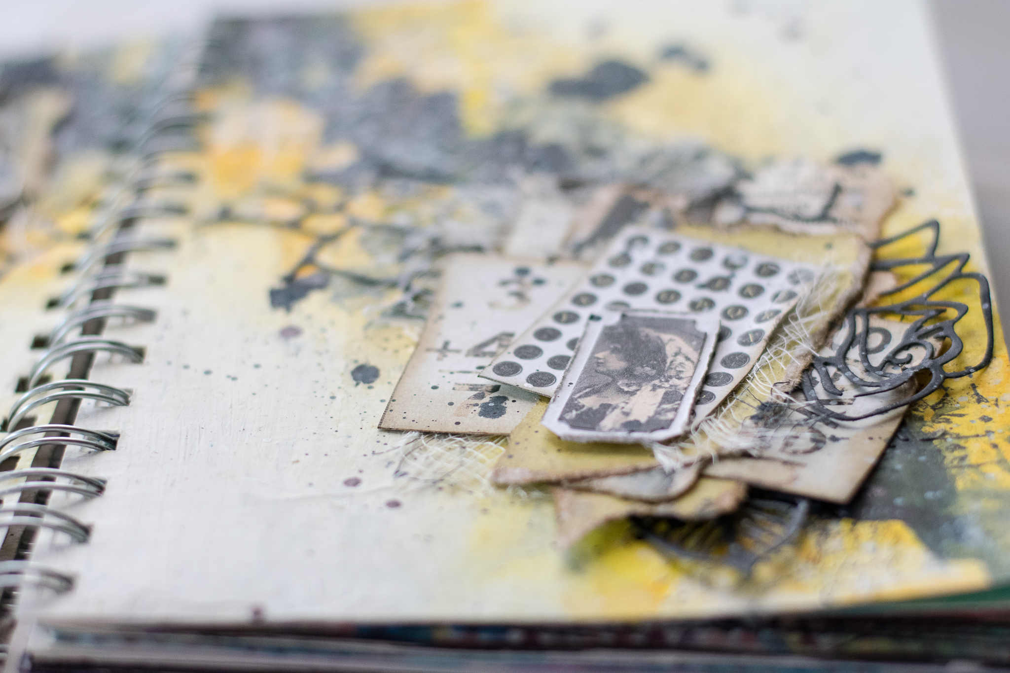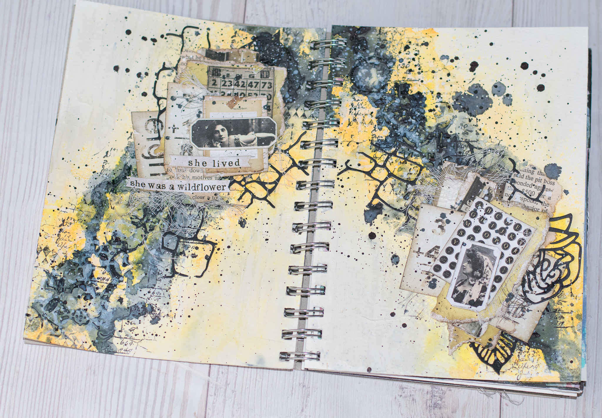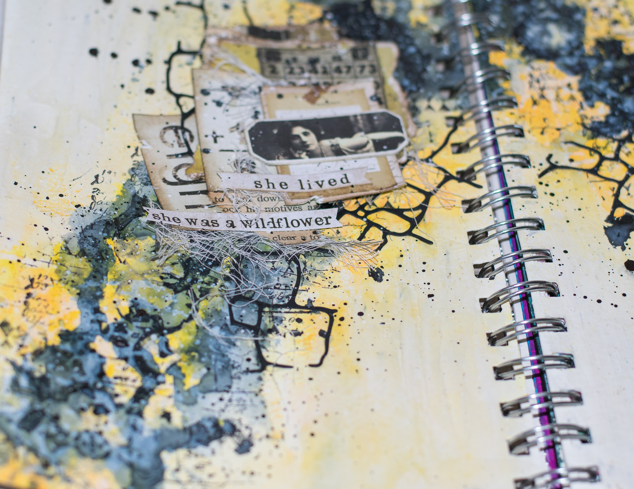 but then i tried some splashes and background stamps with black ink and i think it looks so much better!