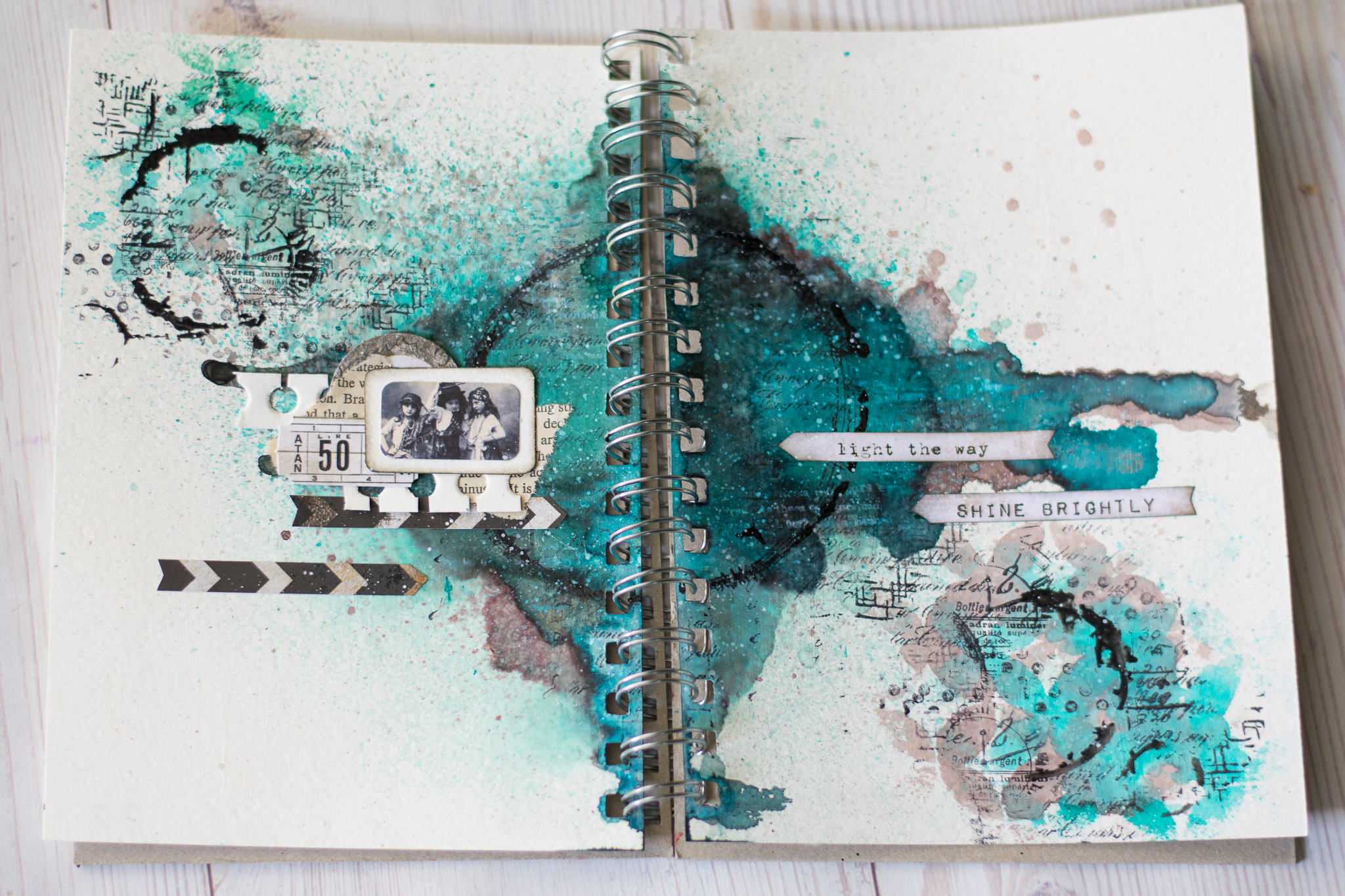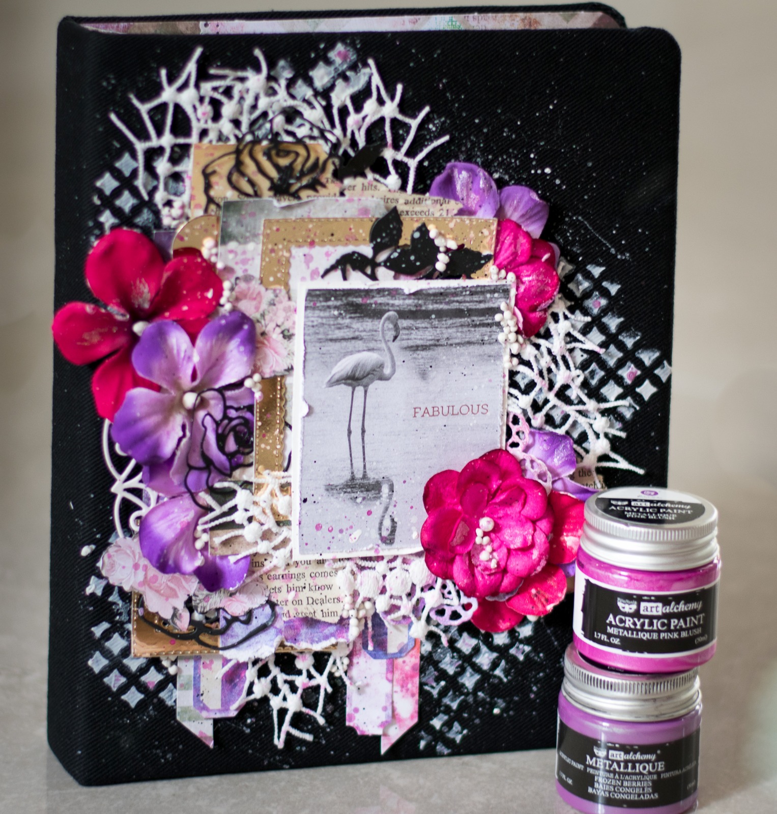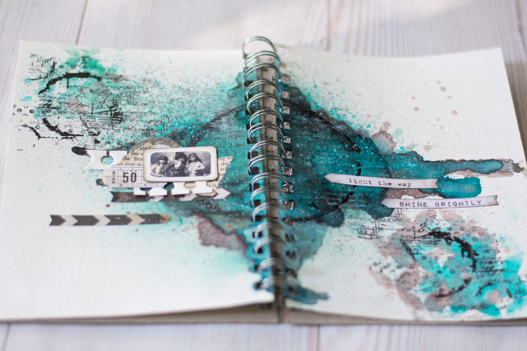 but then i tried some splashes and background stamps with black ink and i think it looks so much better!