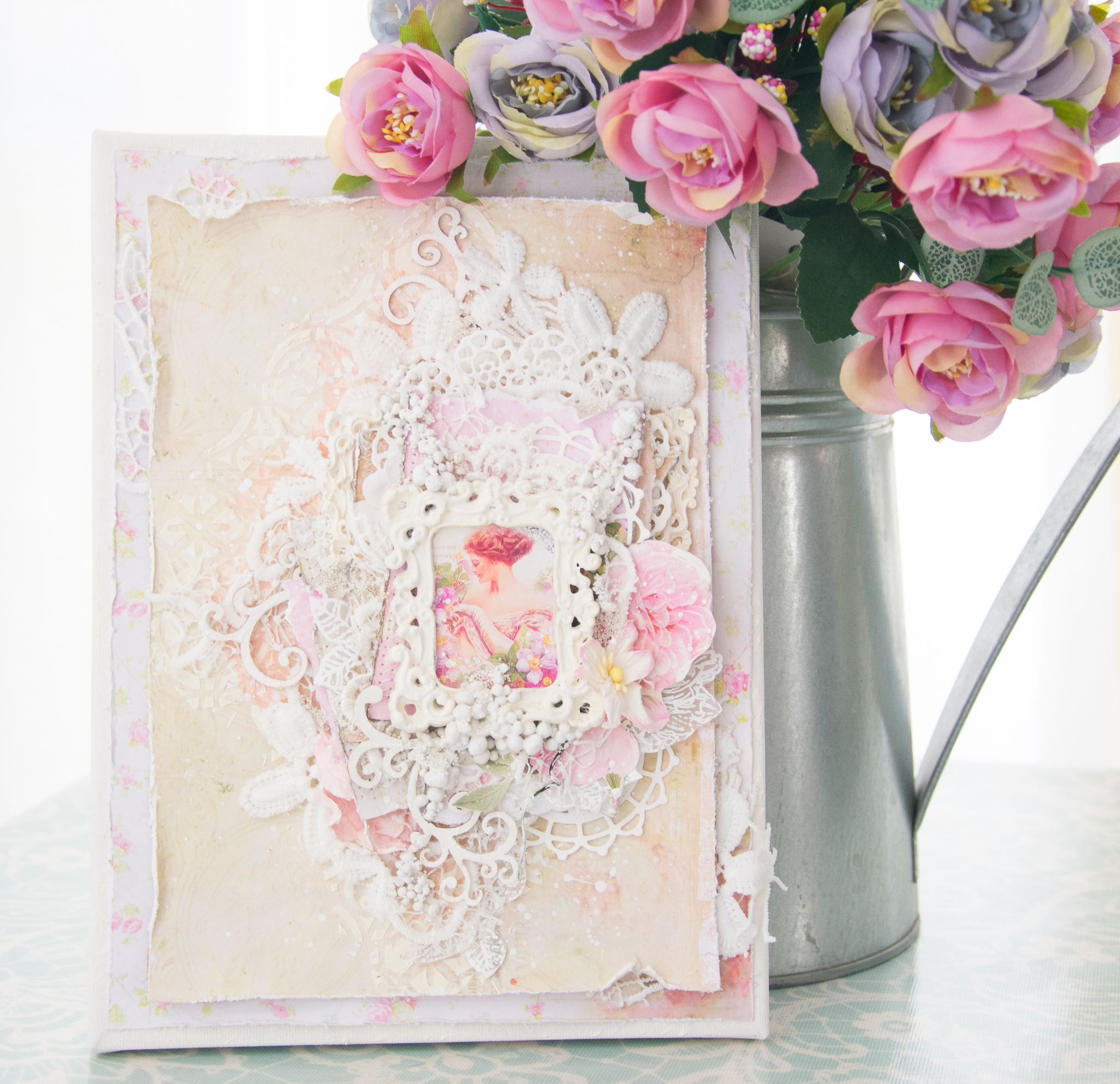 In my mind the word "DELICATE" automatically inspired my to create in a shabby chic style.