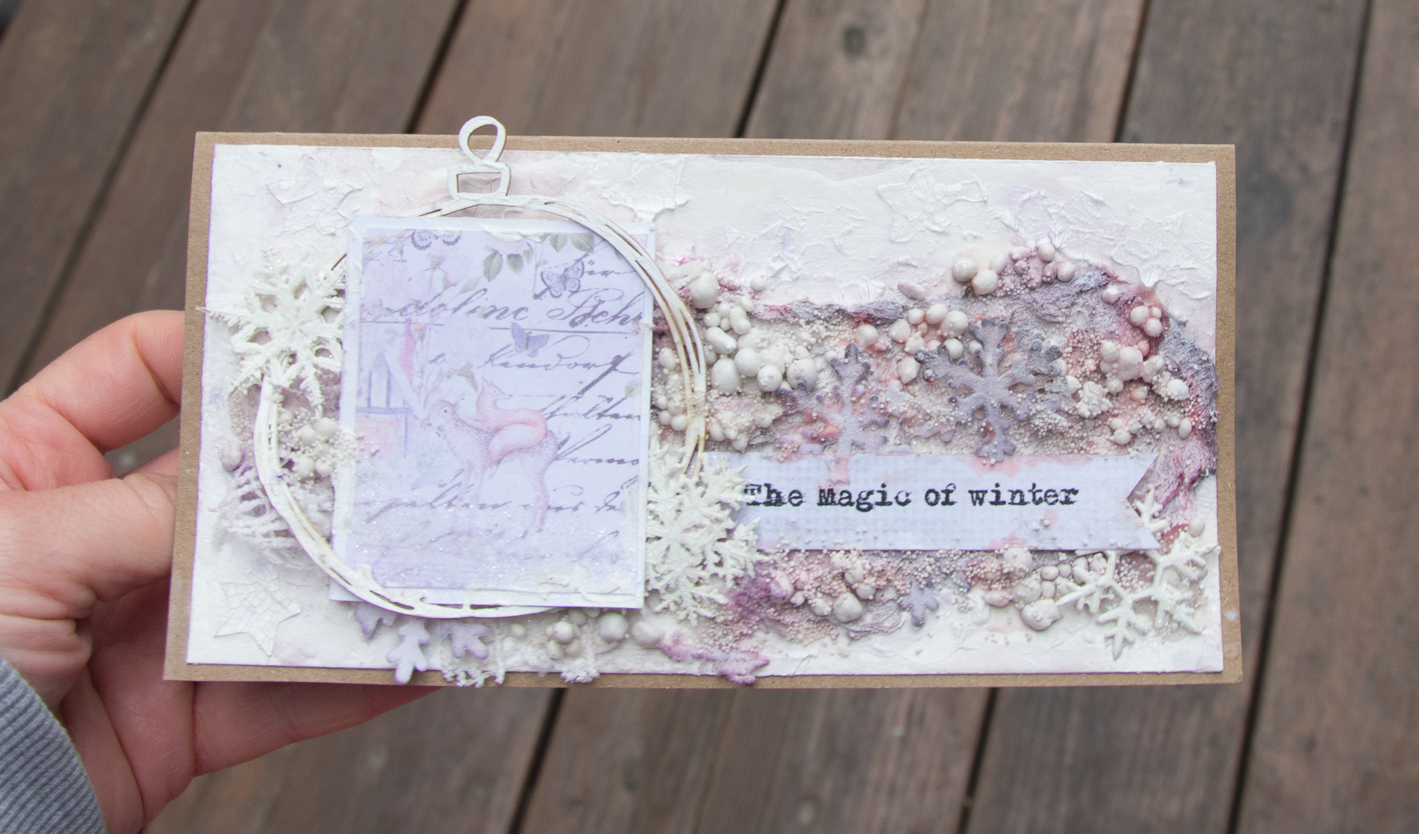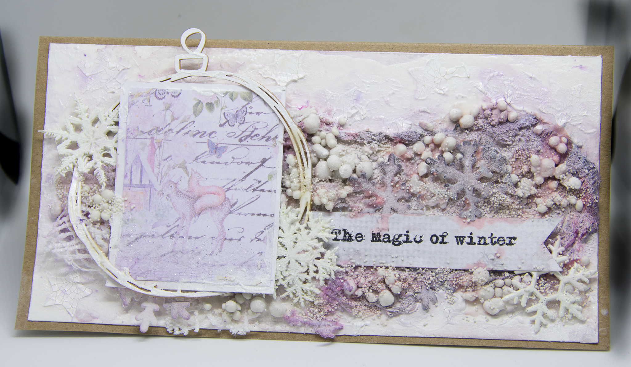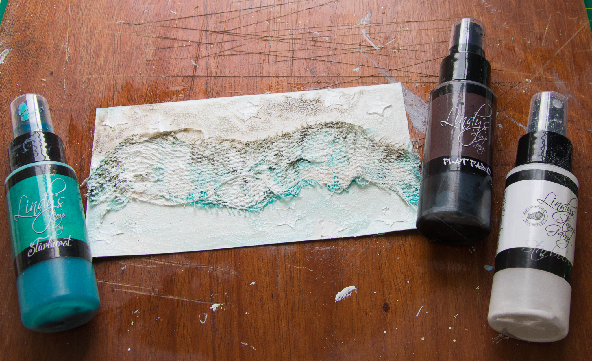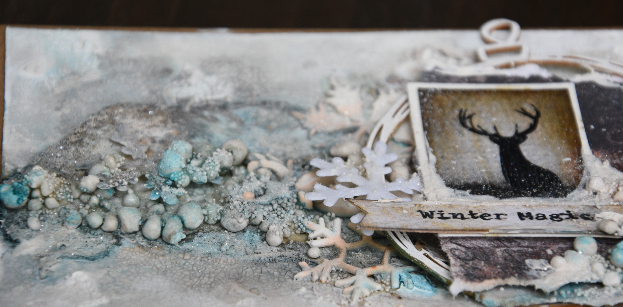 In this one i use'd 3 colors of lindy's mists and tried to use elements that helped me create a cold wintery kind of mood. you can see the all process of my work and the material i have used at the following pictures.
