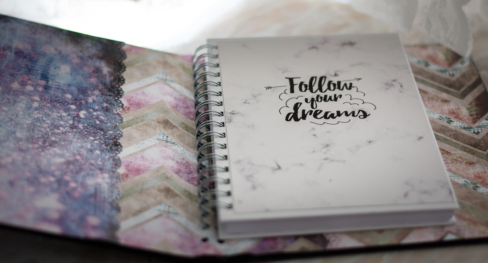 I placed the sentence and all the elements on the left side of the frame (not in the center!), and I added a secondary focal point with resembling colors on the top right of the frame to keep the interest.