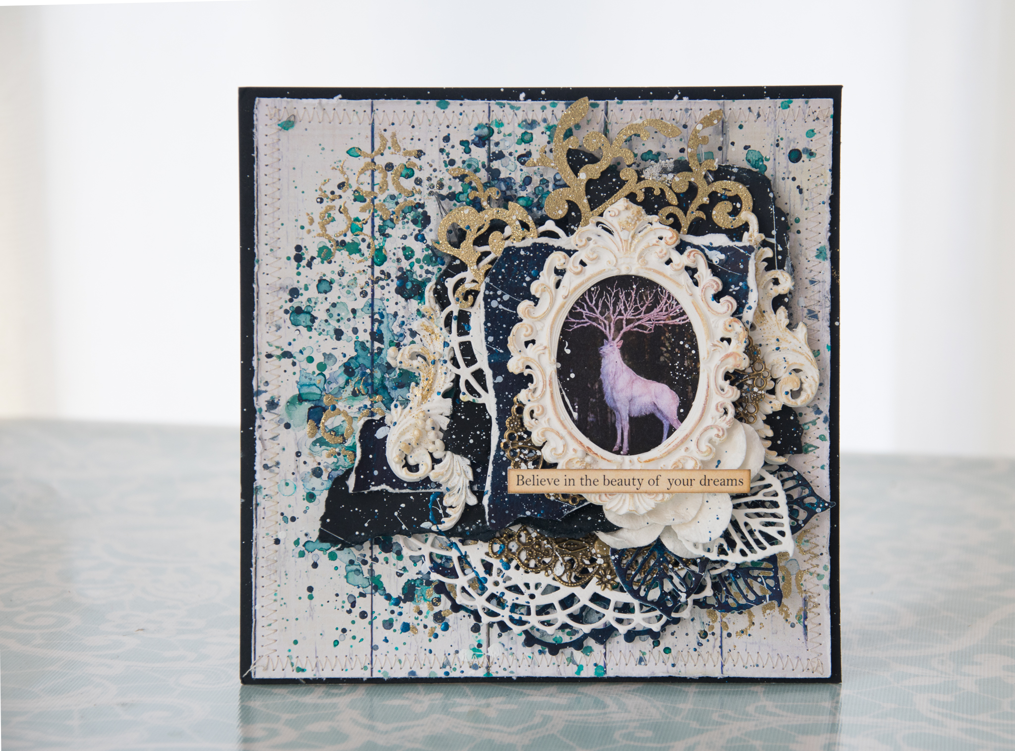 Word & Paintery introduce a gorgeous Palette for this challenge : dark blue, green and antique gold
