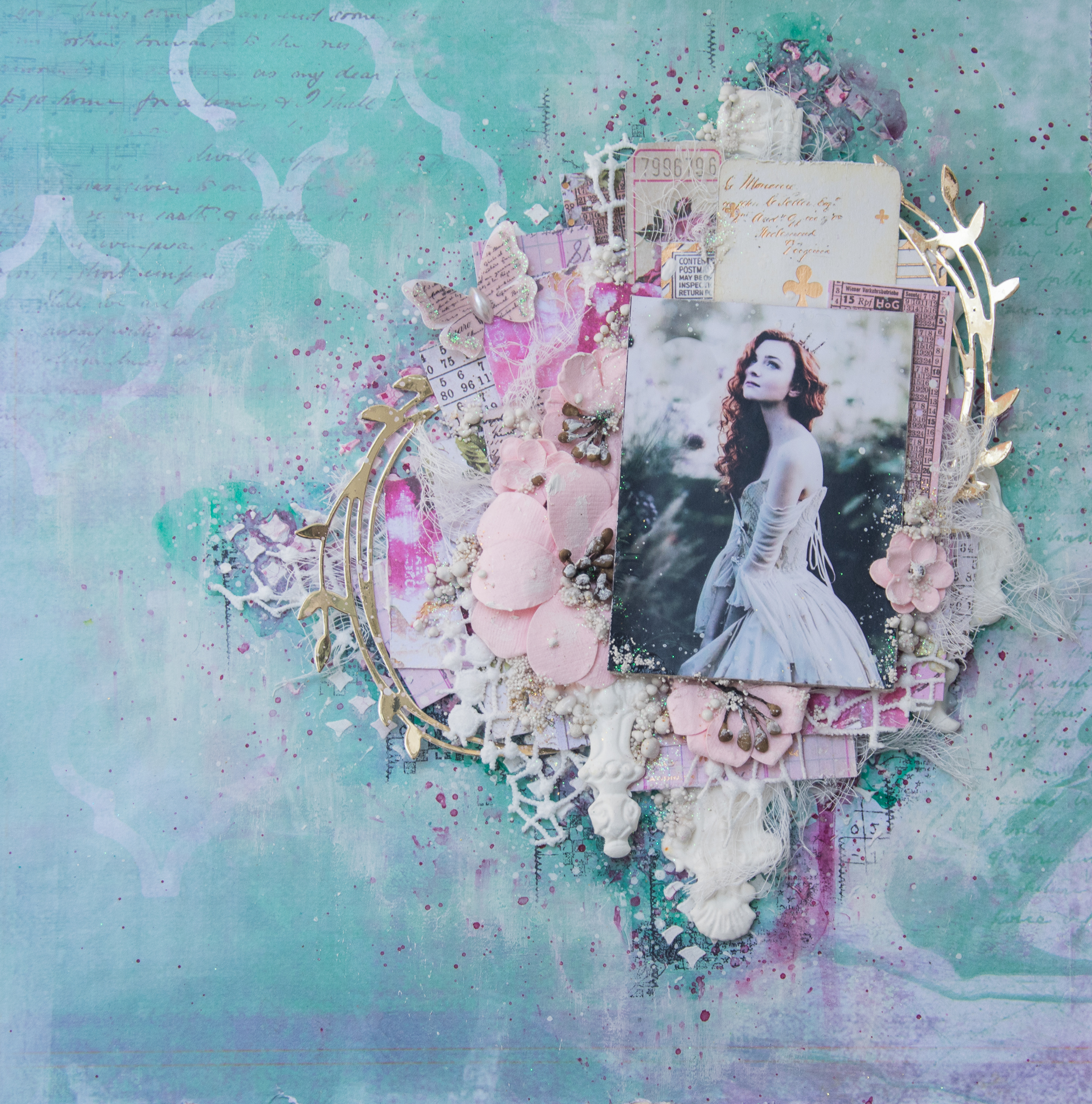 I had so much fun playing and used the gorgeous papers from "prima" - "love story"