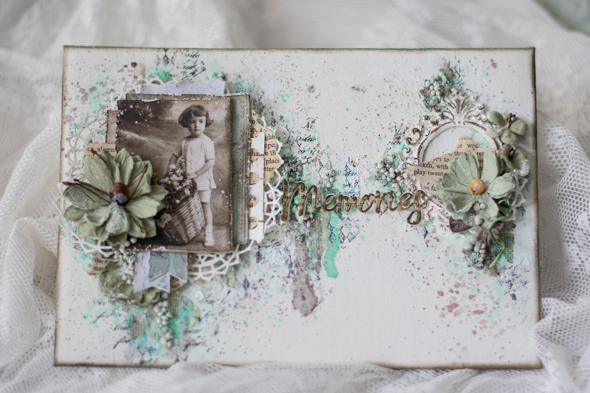 For the creative challenge i added a mold frame as a second focal point to support the main element and they create a story together. the boy has a kind of longing look in his eyes that represent a sweet memory in my canvas story.